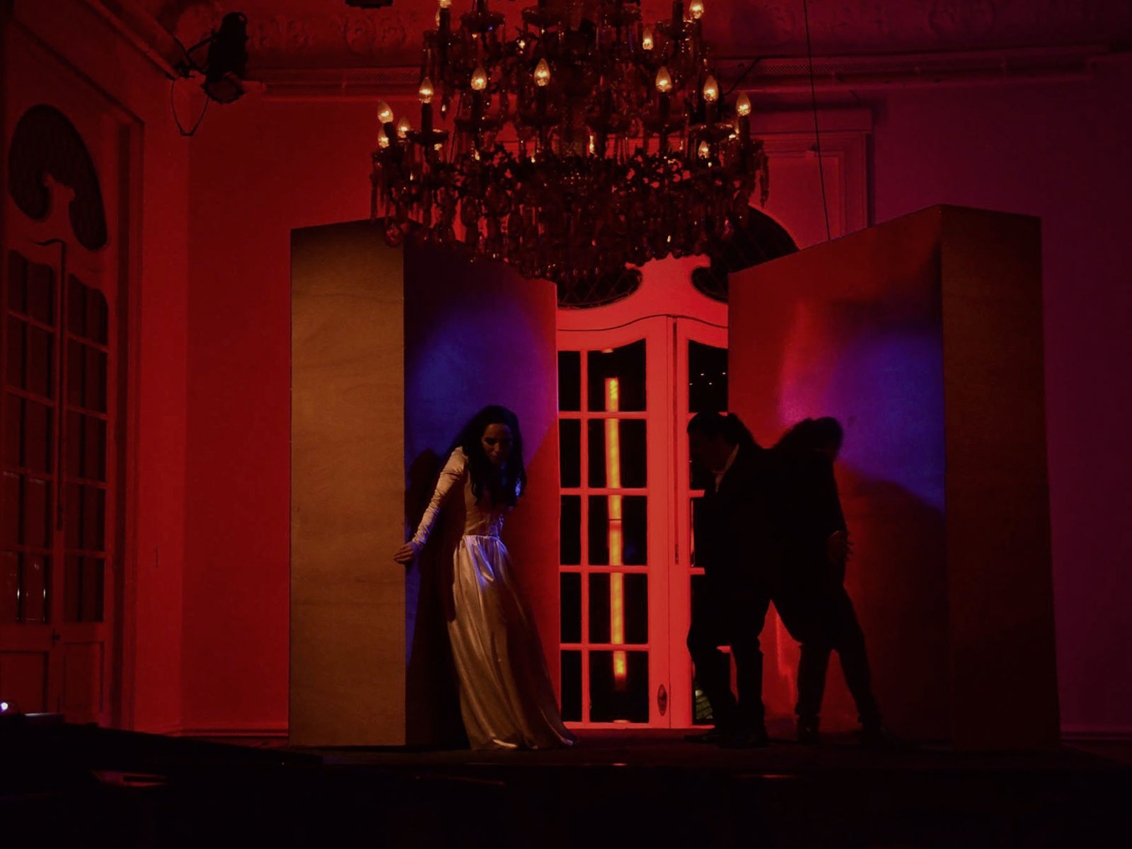 Diseño de escenografía desarrollada para la compañía Opera Anónima basada en la composición triangular del compositor húngaro Bela Bartok.