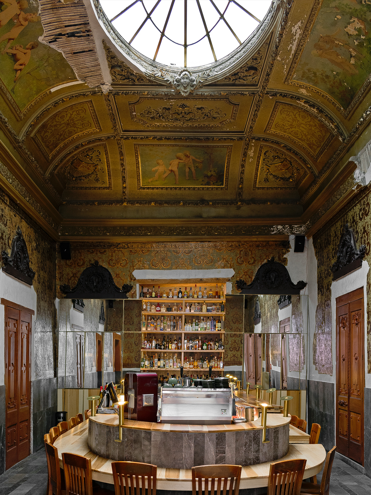 La restauración de la primera planta de una casa aristocrática de mediados del siglo XlX ubicada en el corazón de la Ciudad de México, con una última intervención y abandono de más de treinta años. Dejo una panorama de miles de capas de intervenciones arquitectónicas, recuerdos y objetos libres a indagar, inspeccionar y seleccionar o sustraer. Su adaptación para restaurante, permitió el diseño de interiores, el diseño de mobiliario, y la dirección creativa de identidad.